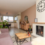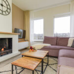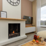 2e verdieping: prettige overloop met veel lichtinval door de lichtkoepel en trendy deuren. Modern toilet (2021) met een hangcloset en inbouwreservoir. Knusse woonkamer met een sfeervolle gashaard, keurig gestucte wanden en plafond en fraaie laminaatvloer. Aan de achterzijde van het appartement een moderne open keuken (2020) in hoekopstelling. De keuken is voorzien van o.a. een inductie kookplaat, afzuigkap, koelkast, tafelmodel vriezer, combi-magnetron en een vaatwasser.