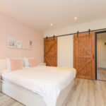 Ruime masterbedroom aan de voorzijde van het appartement met een fijne vaste kast. Vanuit de masterbedroom toegang tot een balkon.