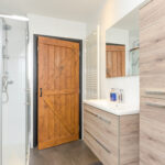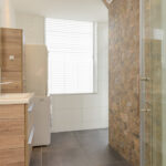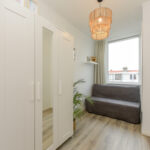 Aan de achterzijde van het appartement een tweede slaapkamer met een vaste kast en een vaste kast met opstelplaats voor een cv-ketel (Intergas 2006). Verder een moderne en luxe badkamer (2020) welke is voorzien van een douchecabine, wasmeubel, handdoekenradiator en opstelplaats voor een was-/droogcombinatie. Verder toegang tot een balkon.