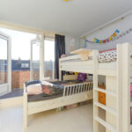 2e verdieping: overloop met een separaat toilet. Aan de voorzijde van het appartement een berging annex wasruimte met opstelplaats voor een wasmachine. Ruime slaapkamer aan de voorzijde van het appartement met een dakkapel. Badkamer met ligbad en douchegelegenheid met een vaste tafel en toegang tot het balkon. Prettige slaapkamer aan de achterzijde van de woning met vaste kast en openslaande deuren naar het balkon over de volle breedte van het appartement. Vanuit de overloop toegang tot de vliering waar de opstelplaats van de cv-ketel (Intergas 2009) is ondergebracht.