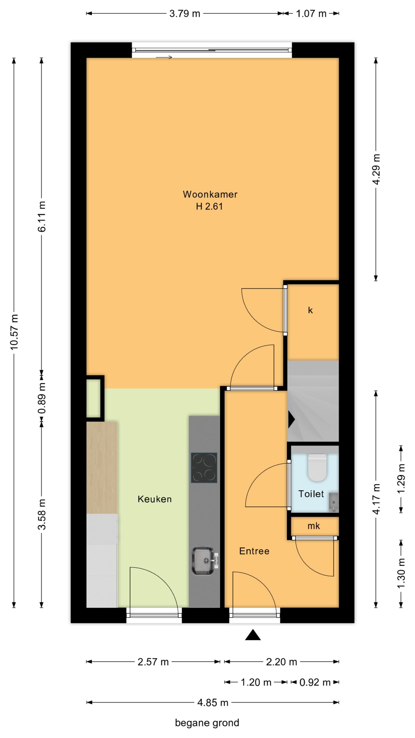 Via de verzorgde voortuin betreedt u de woning. In de hal bevinden zich de meterkast (voorzien van 9 groepen) en een modern toilet met hangcloset, inbouwreservoir en fonteintje.