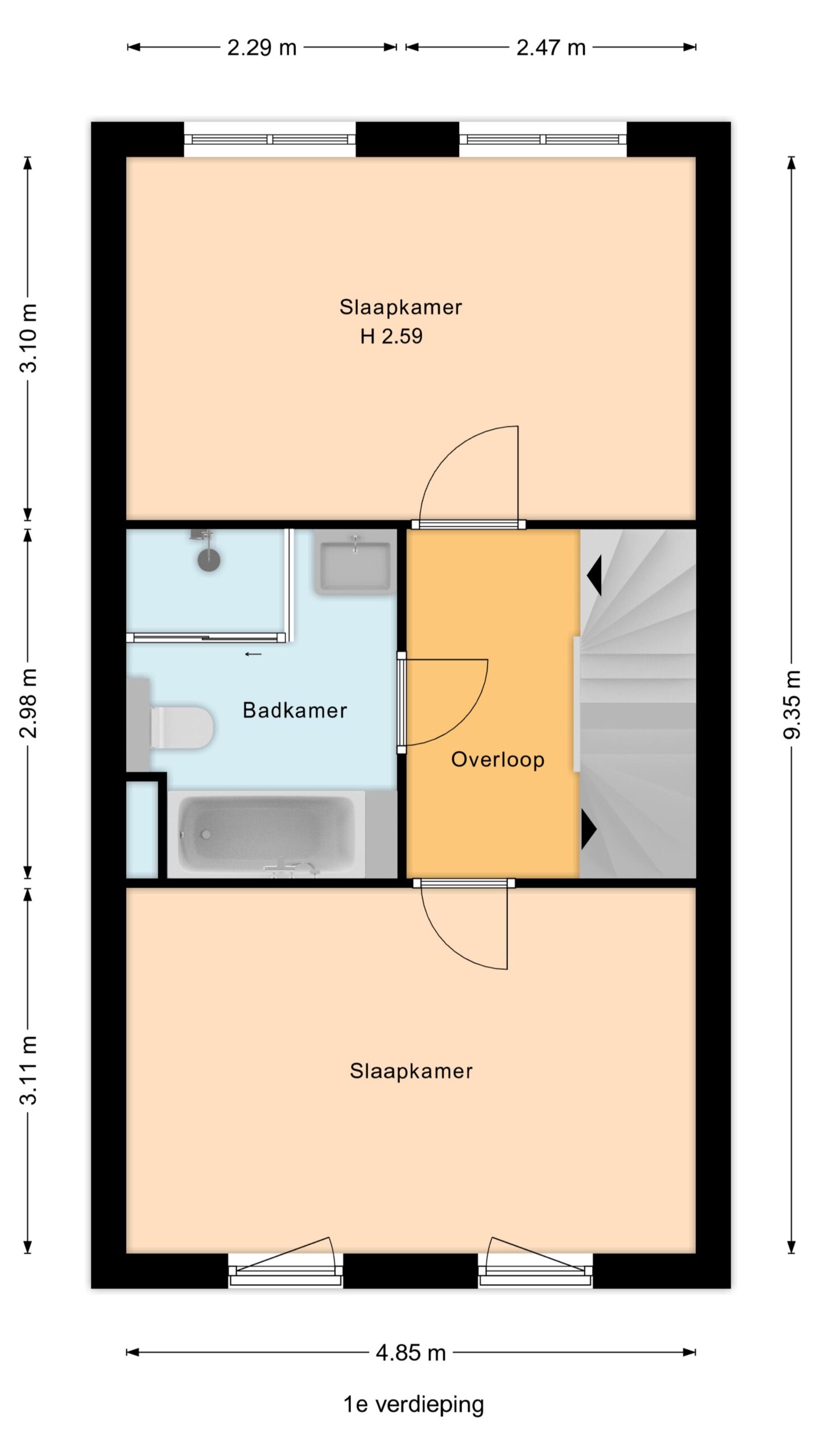 Via de overloop bereikt u een ruime slaapkamer aan de voorzijde, momenteel ingericht als masterbedroom. Hier geniet u dagelijks van een fraai vrij uitzicht richting de Wennetjessloot, een heerlijk rustgevend begin en einde van de dag.