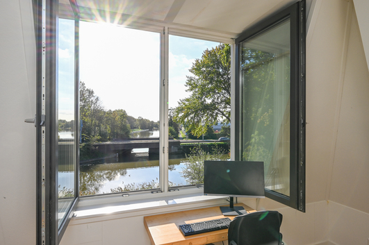 - Woning is voorzien van houten kozijnen met HR+++ glas