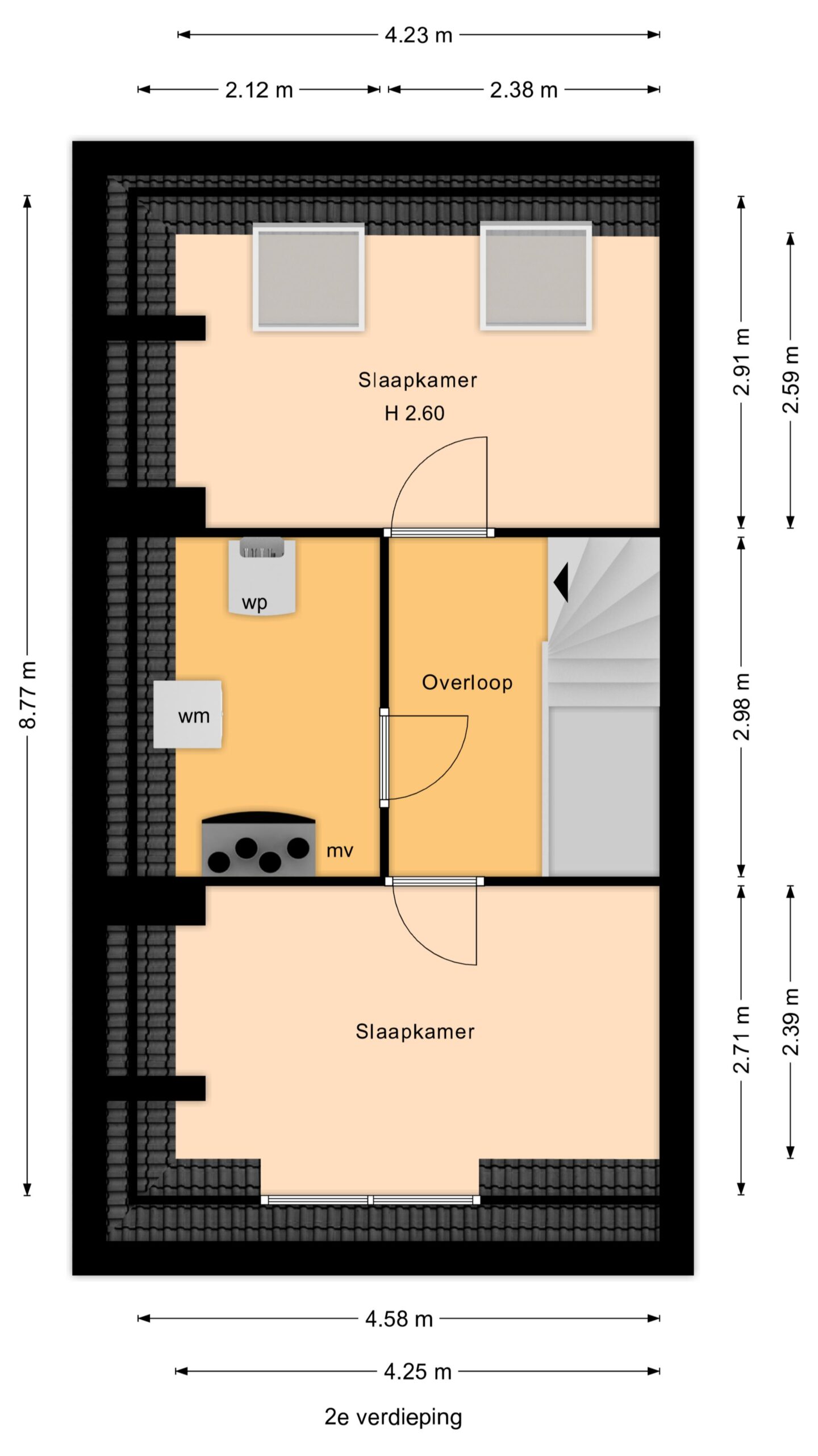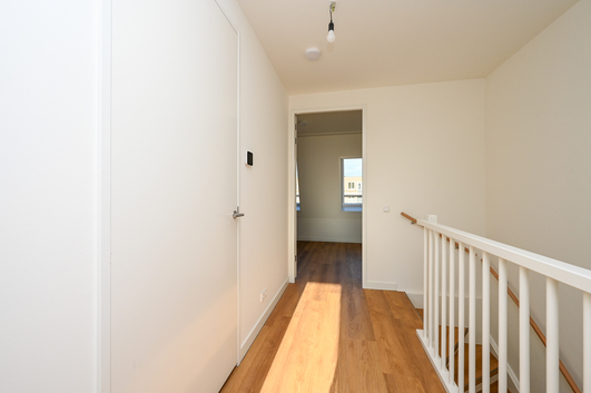 De overloop op de tweede verdieping biedt toegang tot meerdere functionele ruimtes, waaronder een praktische wasruimte met opstelplaats voor de was-/droogcombinatie, de WTW-unit en duurzame lucht/water-warmtepomp met een 200-liter boiler.