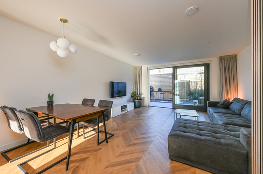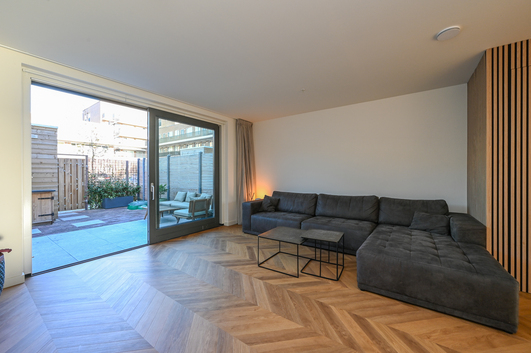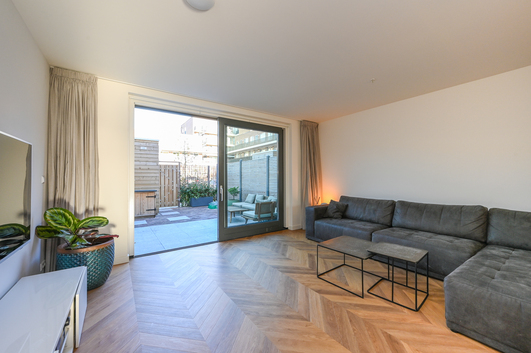Bij binnenkomst valt direct de prettige sfeer op. De living is uitgebouwd met circa 1,20 meter, waardoor een royale leefruimte is ontstaan met veel daglicht. De openslaande deuren naar de verzorgde achtertuin (gelegen op het noordwesten) verbinden binnen met buiten op een natuurlijke manier. De tuin is onderhoudsvriendelijk aangelegd en beschikt over een achterom naar de eigen parkeerplaats.