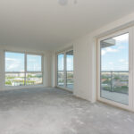 Afgesloten gemeenschappelijke entree met brievenbussen, bellentableau en videofoon. Statige hal met liften naar de 14e verdieping met een inpandige hal naar het appartement. Het gehele appartement beschikt over verassend veel lichtinval door de 10 raampartijen vanaf de vloer tot aan het plafond. Centrale hal met een inpandige berging met een meterkast (6 groepen), WTW-systeem en een opstelplaats voor een warmtepomp met doorstroomboiler en opstelplaats voor een wasmachine. Modern separaat toilet voorzien van een hangcloset, inbouwreservoir en een fonteintje. Tussenliggende badkamer met een douchegelegenheid, vaste wastafel en een (elektrische) handdoekenradiator. Twee slaapkamers waarbij de masterbedroom zeer royaal is. Fantastische woonkamer met een nog in te richten open keuken, waarbij je gevoelsmatig direct naar het vergrote terras wordt getrokken om het spectaculaire uitzicht over o.a. de skyline van Den Haag te bewonderen. Eigen parkeerplaats in de naastgelegen parkeergarage en gemeenschappelijke fietsenstalling.