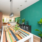 De combinatie van eetkamer en veranda zorgt voor een heerlijk licht en open gevoel, waarbij buiten naar binnen wordt gehaald.