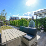 De veranda aan de voorzijde geeft de woning een unieke, bijna landelijke uitstraling – perfect om buiten te zitten, ook bij minder weer.