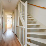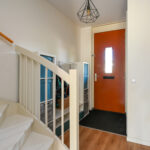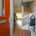 De centrale hal is keurig afgewerkt en biedt toegang tot de trap naar de eerste verdieping, een moderne meterkast met 9 groepen en unit voor stadsverwarming. Het separate toilet is modern uitgevoerd en voorzien van een hangcloset, inbouwreservoir en een fonteintje.