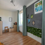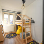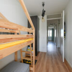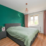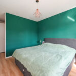Aan de voorzijde van de woning vindt u een derde slaapkamer, ideaal als kinder-, werk- of logeerkamer. Door het uitzicht over de voortuin met veranda heeft ook deze kamer een prettige sfeer.
