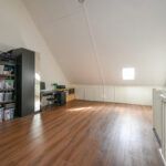 Tweede verdieping: Ruime zolder met opstelplaats voor een was-/droogcombinatie en de unit voor de mechanische ventilatie. De zolder biedt volop mogelijkheden en is bij uitstek geschikt om te worden opgedeeld in meerdere volwaardige slaapkamers. Er is reeds leidingwerk aanwezig voor een tweede badkamer – ideaal voor een groter gezin of gastenverblijf.