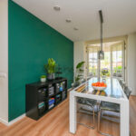 De lichte living is slim ingedeeld met comfortabele vloerverwarming. Aan de voorzijde bevindt zich een gezellige eetkamer, die via openslaande deuren direct toegang geeft tot de veranda en voortuin.